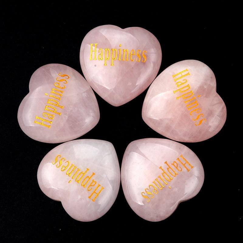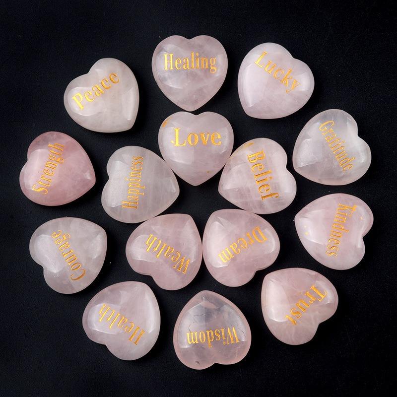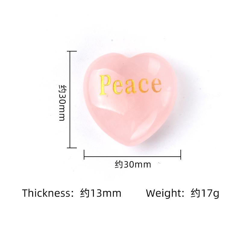 Pierres inspirantes avec des mots, cristal naturel, pierre de quartz rose de 30 mm, cœur, amour, sculpté, paix, bonheur, gentillesse, chance