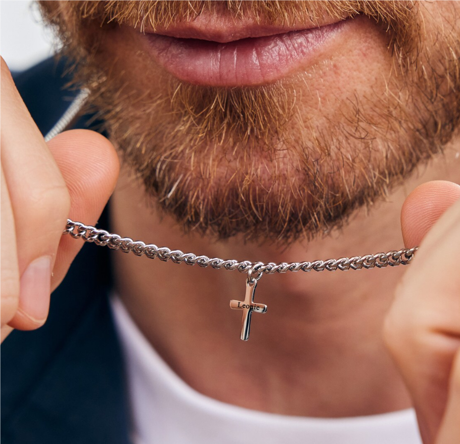 Inspire Jewelry Cross Necklace Stainless Steel Curb Chain Personalized Engraving Name Necklace Family Necklaces Men's Jewelry