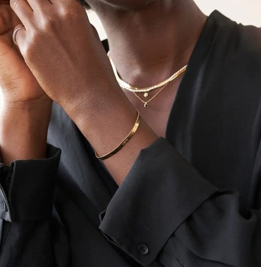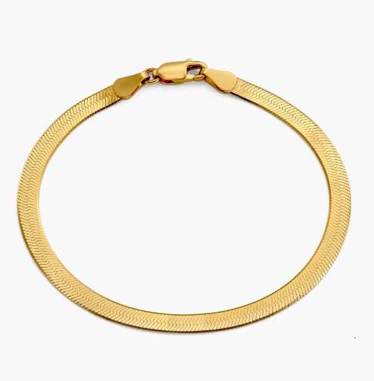 Inspire Jewelry Waterproof Jewelry Stainless Steel 18k Gold Plated Herringbone Flat Snake Chain Bracelets for Women