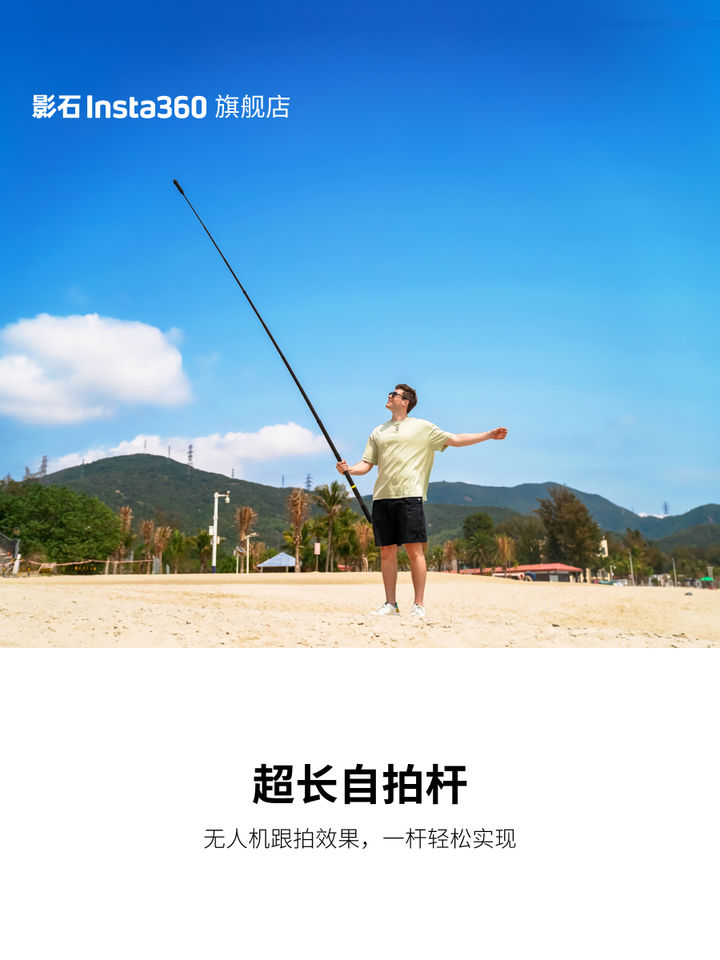 Perche à selfie Insta360 de 3 mètres compatible avec les caméras de sport de la série X
