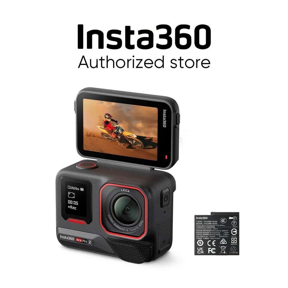 Insta360 Ace Pro 2 Dual Battery Standard Bundle Box Featuring Touch Screen Dual Screen CMOS Wide Angle Night Vision Black 2x