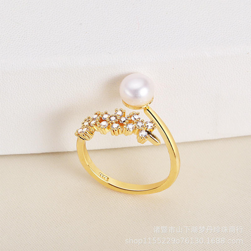Bague pour femme style Instagram en perles avec design ouvert plaqué or cuivre, incrustation alimentaire personnalisée, bijou de niche 'Hundred-Hand'