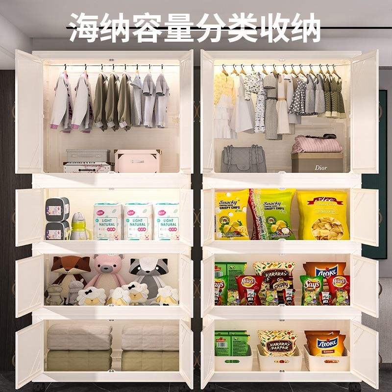 Armoire de rangement pliable en plastique multicouche pour vêtements, idéale pour chambre de bébé ou salon en location