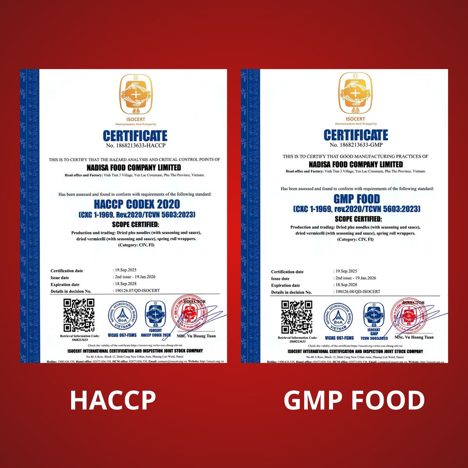 Nouilles de riz au bœuf instantanées Pho 90g Fabriquées au Vietnam Artisanales Prêtes en 4 minutes Durée de conservation de 9 mois Produit d'exportation