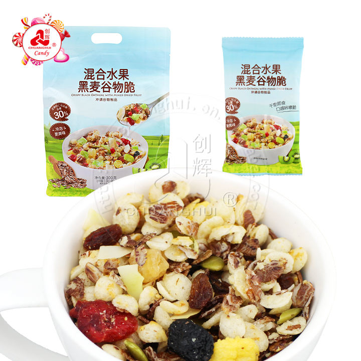 Flocons d'avoine noirs croustillants instantanés avec fruits secs mélangés, flocons de seigle, céréales
