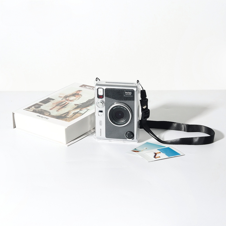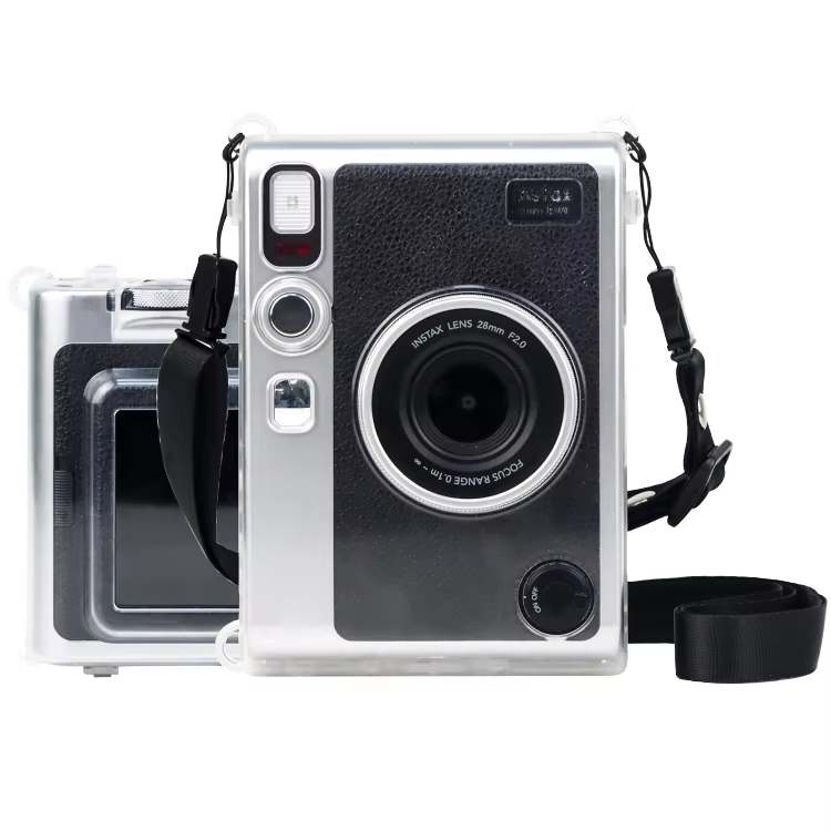 Coque Instax Mini EVO, coque rigide transparente transparente en PC avec sangle, protection anti-rayures