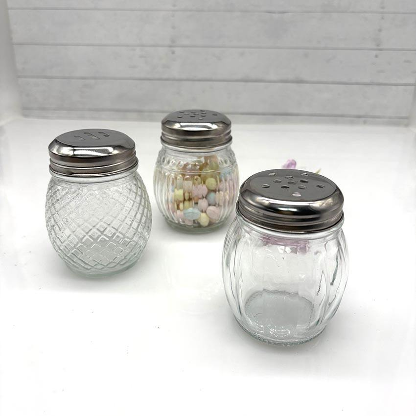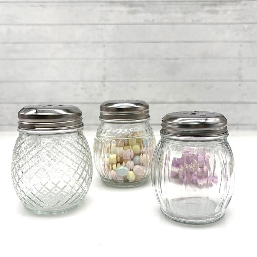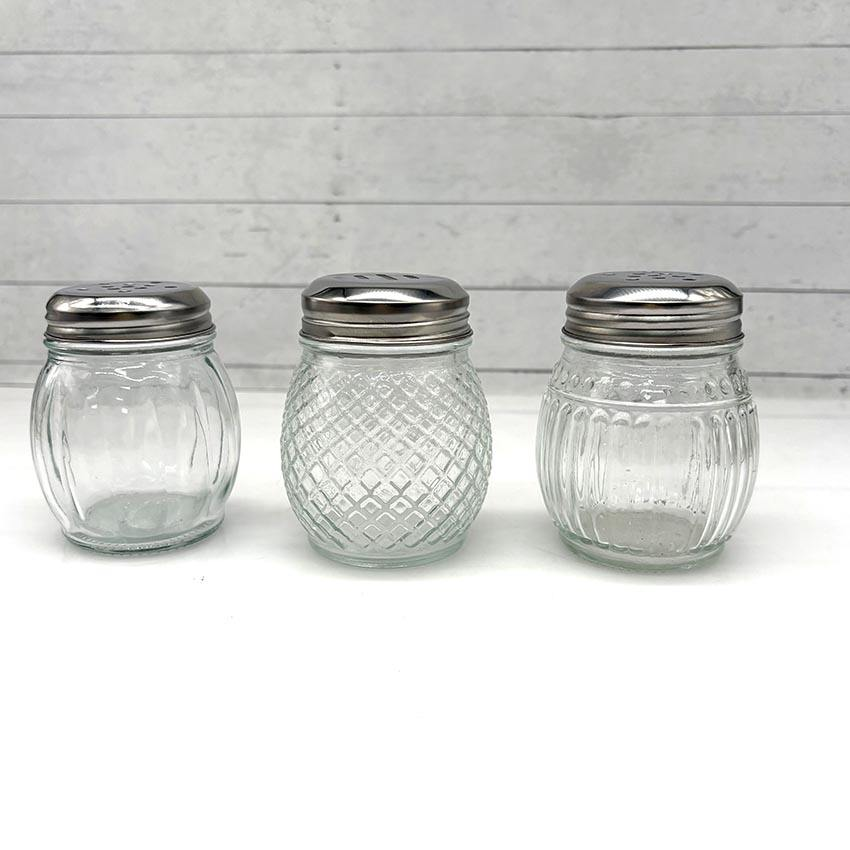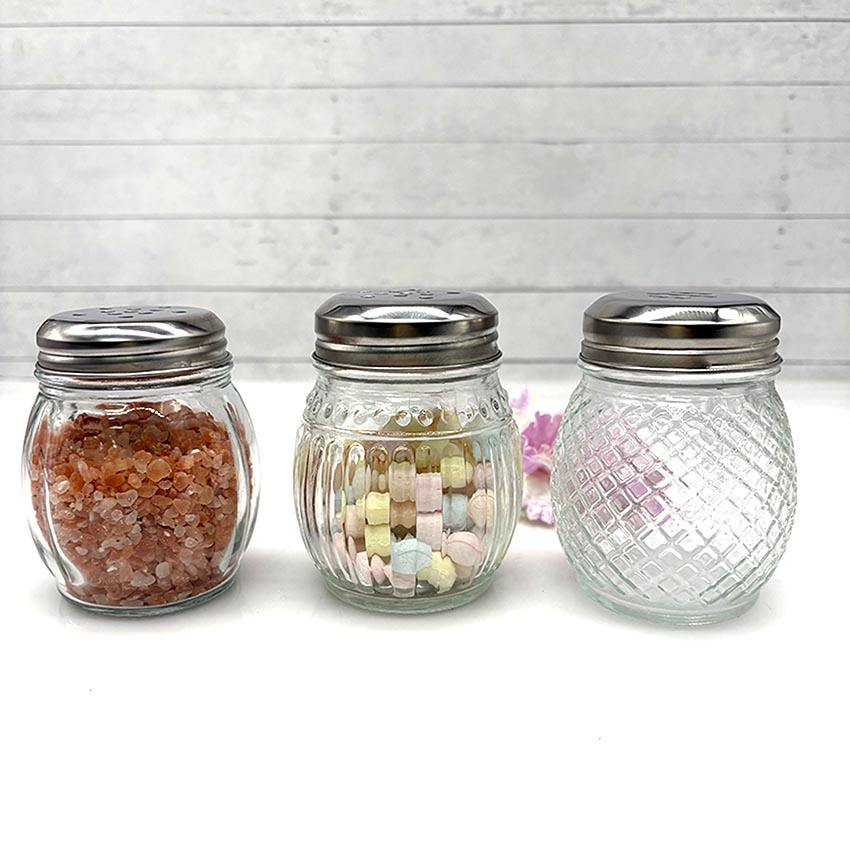 En stock : Pot en verre ondulé en forme d'ampoule de 150 ml pour épices, sel et poivre, avec couvercle perforé en acier inoxydable