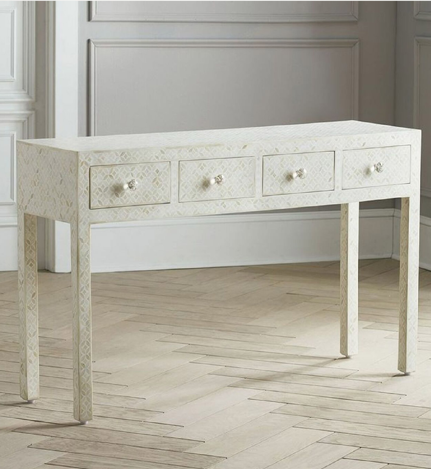 Intarsia Table console florale incrustée d'os rouge sans tiroir Table indienne incrustée d'os de haute qualité pour salon en gros