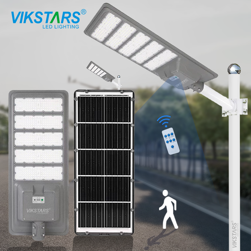 Lampadaire solaire intégré 300W/400W/500W Lampe LED d'extérieur étanche Capteur de lumière Télécommande IP65 pour route