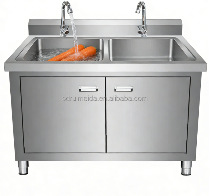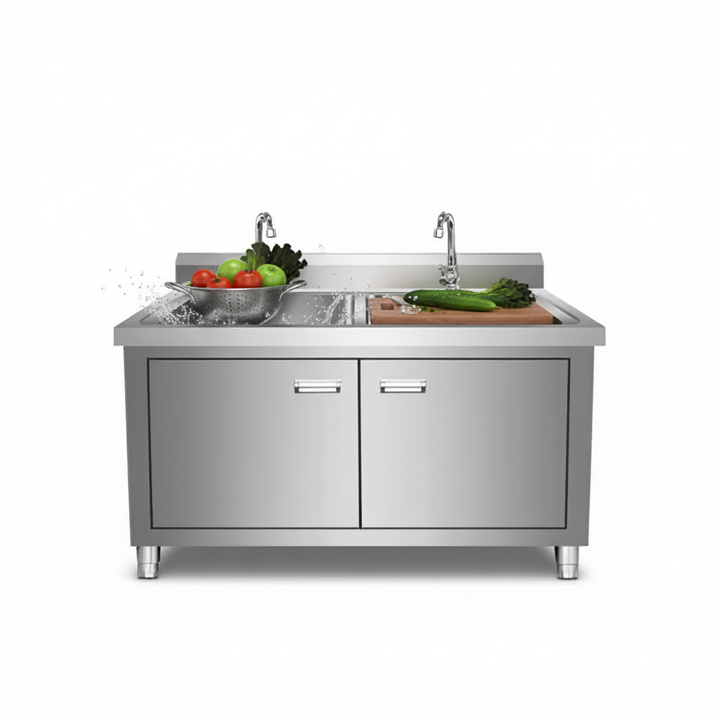 Évier intégré en acier inoxydable 304 avec plan de travail pour le lavage de la vaisselle et des légumes dans les hôtels et les restaurants