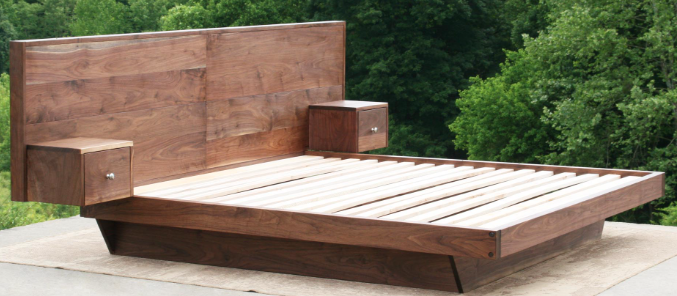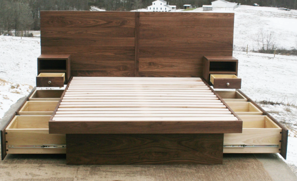 Unité intégrée tête de lit et table de chevet (bois sur mesure)