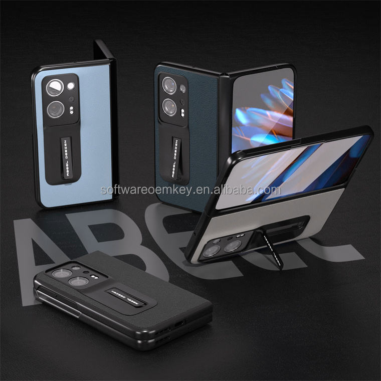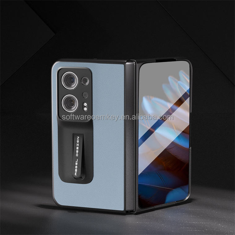 Coque de téléphone intégrée et coque de protection pour OPPO FIND N2 Housse de support antichoc en cuir véritable motif vague
