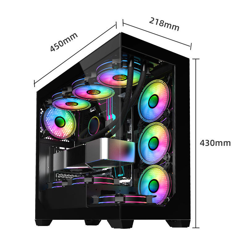 Ordinateur de bureau de jeu Intel Core I5 I7 Boîtier panoramique Ordinateur haute performance Prend en charge la carte graphique RTX 3060 Conception de refroidissement par eau pour l'e-sport