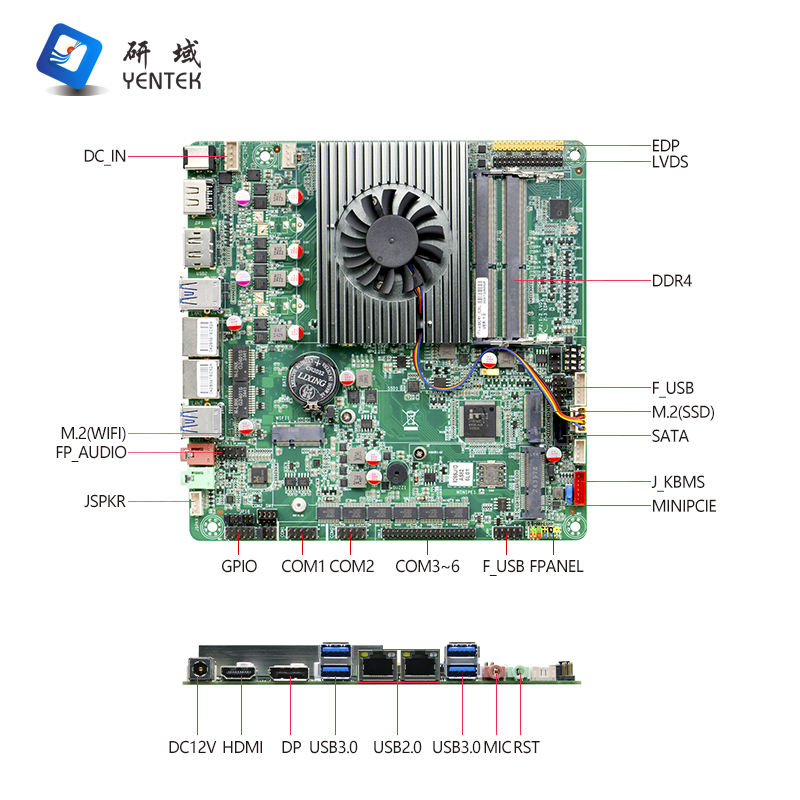 Carte mère Intel I5 8265U avec processeur 2 DDR4 M.2 HD DP LVDS EDP MiniPCIe WiFi 4G 2 LAN 6 RS232 485 COM Mini ITX Carte mère