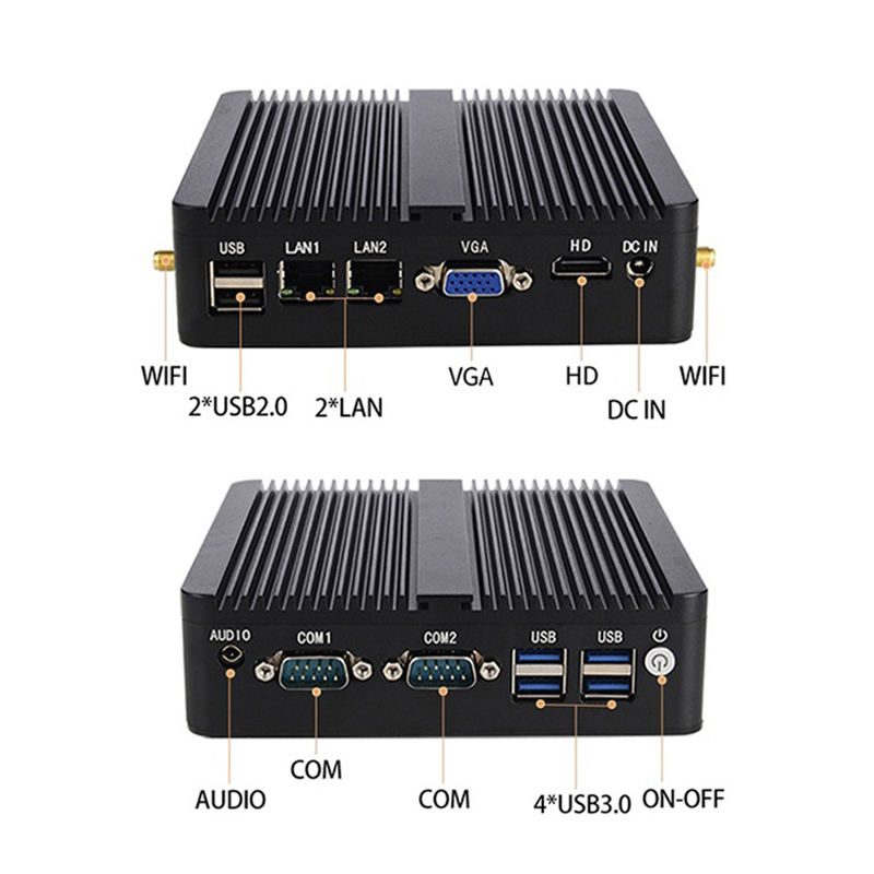 Mini PC industriel sans ventilateur Intel avec carte graphique intégrée, DDR, double LAN, double COM, HD, DP, compatible avec D-IN, montable sur rail