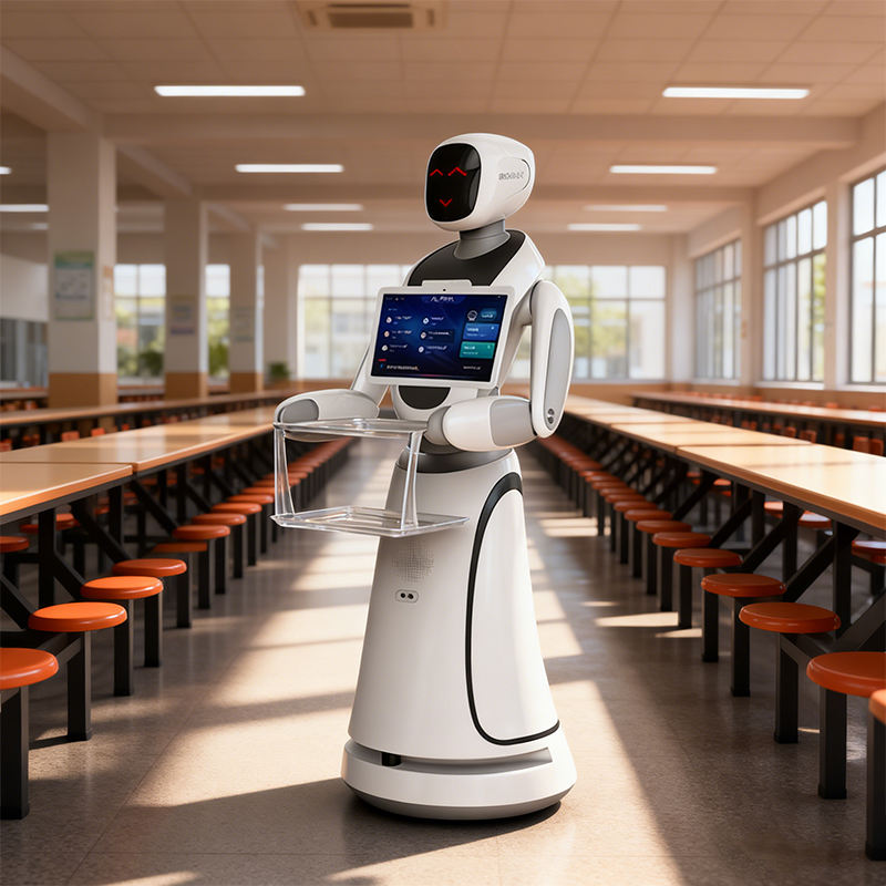 Robot de service alimentaire intelligent Amy, livraison autonome par IA, double plateau, écran LED pour restaurant, hôtel et café