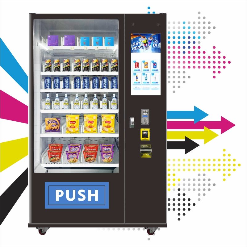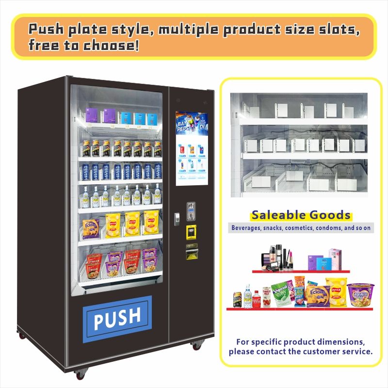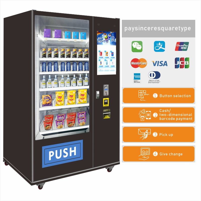 Distributeur automatique intelligent de snacks et de boissons avec écran tactile, capacité de 300 à 600 unités, surveillance à distance, multiple fonctions