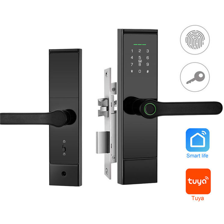Serrure Intelligente Électrique à Empreinte Digitale et Mot de Passe Ttlock Tuya avec Carte RFID, Clé, Wi-Fi et Bluetooth pour Sécurité Domestique – Poignée de Porte Intelligente