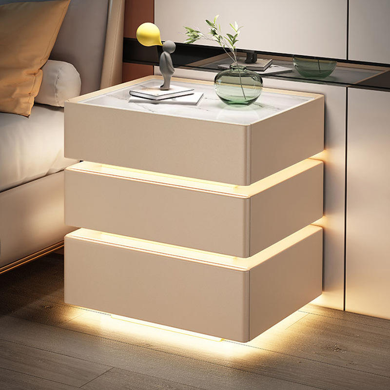 Table de chevet de rangement éco-responsable à 3 tiroirs à induction intelligente pour appartement, chambre à coucher, maison, design moderne et simple