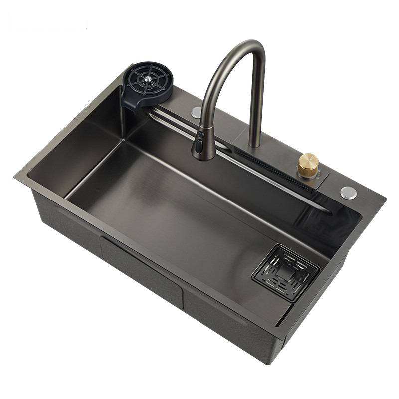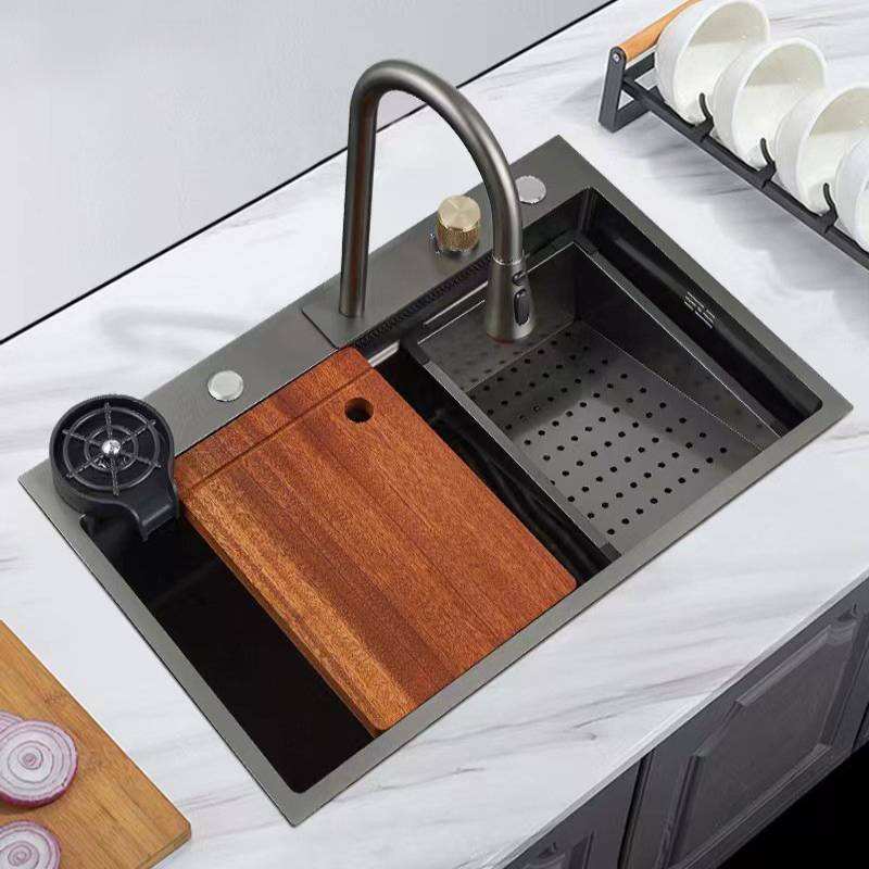 Évier de cuisine intelligent avec affichage numérique LED, en acier inoxydable 304, embossé, anti-éclaboussures, nano-résistant aux rayures.