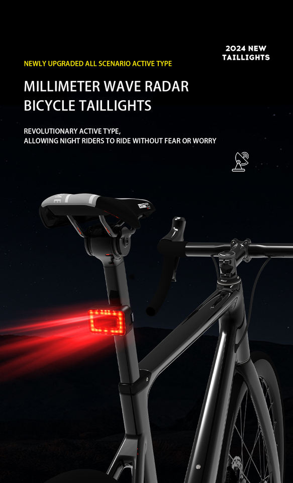 Feu arrière radar intelligent à ondes millimétriques pour vélo de montagne et de route, éclairage d'avertissement de sécurité à haute luminosité