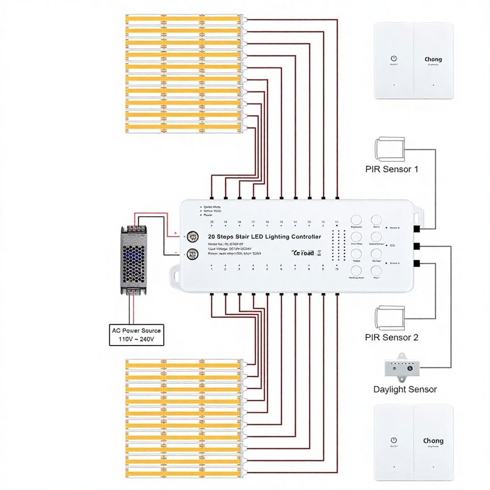 Kit d'éclairage LED intelligent pour escaliers à détection de mouvement, 1 à 20 marches, capteur PIR, télécommande, escalier intérieur