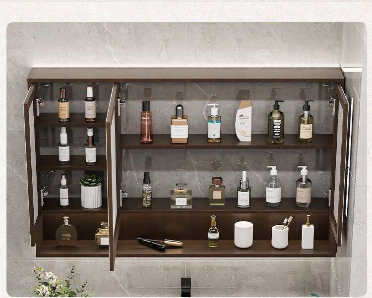 Meuble de salle de bain intelligent avec miroir intégré, nouveau meuble de salle de bain en bois massif de style chinois, lavabo en pierre.