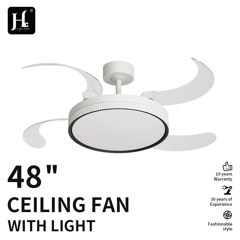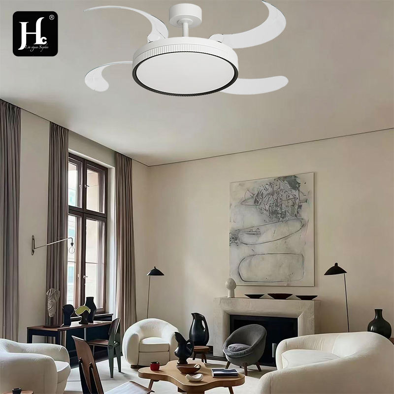 Ventilateur de plafond LED invisible intelligent à télécommande, 42 pouces, en bois massif, 4 pales, pour salle à manger et chambre