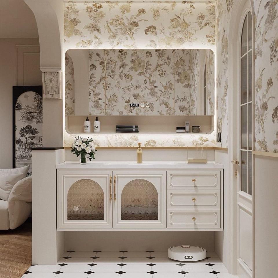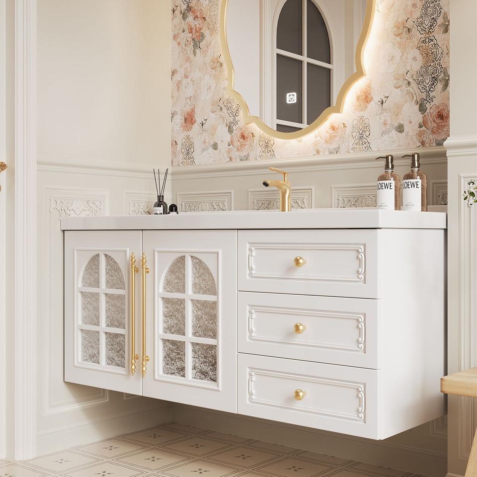 Armoire de salle de bain intelligente avec miroir intégré, vasque sans joint, design français élégant