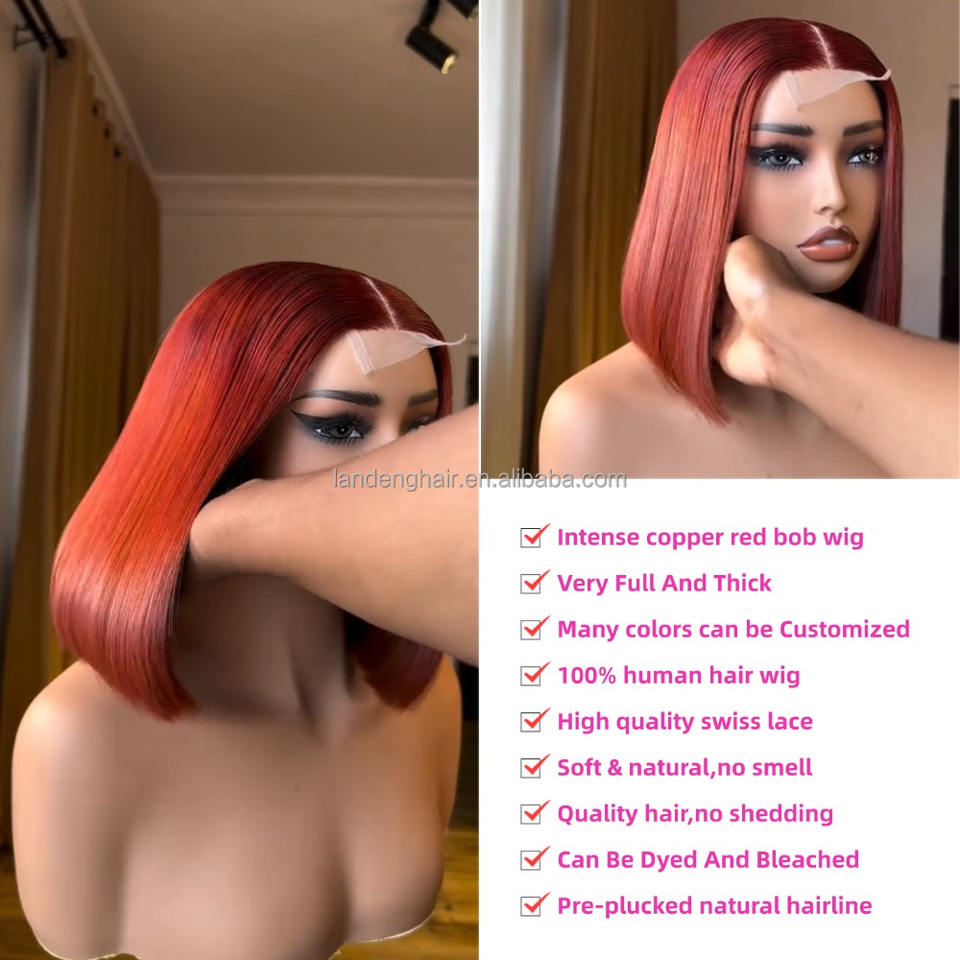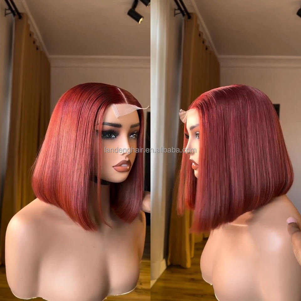 Intense cuivre rouge Double dessiné os droite Bob perruque sans colle 2x6 HD dentelle fermeture brut vietnamien cheveux humains dentelle frontale perruque