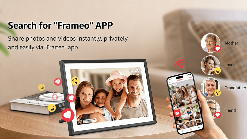 Cadre photo numérique intelligent interactif avec écran tactile de 13 pouces, WiFi, application Frameo pour le partage familial