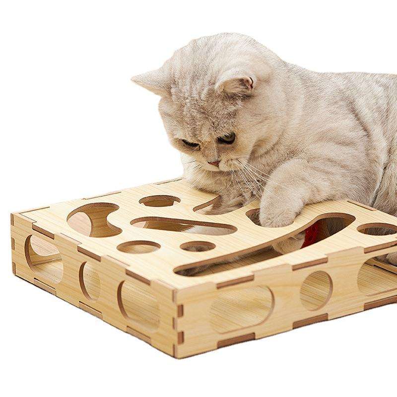 Jouet de puzzle pour chat en bois moderne, écologique et interactif - Design de chasse carrée