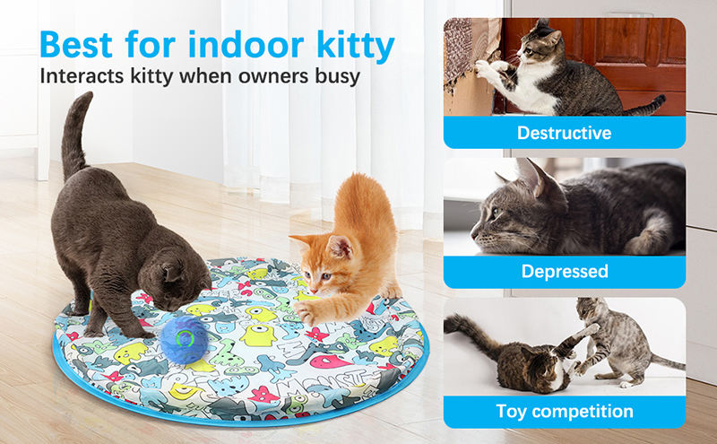 Jouets interactifs pour chats : Pochette de jeu avec balle, activée par le mouvement, tapis de jeu de chasse, jeu de cache-cache et de capture de souris