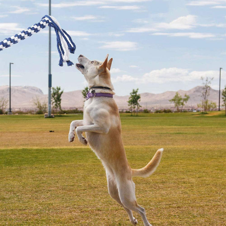 Batterie de lancer de balle jouet pour chien interactif Jouets interactifs pour chiens pour les occuper Jouets de machine de récupération de poteau extensible pour grands chiens Jouet chien interactif os bleu Taille de la boîte: 105*7*7 cm Poids de la boîte: 0.6 KG