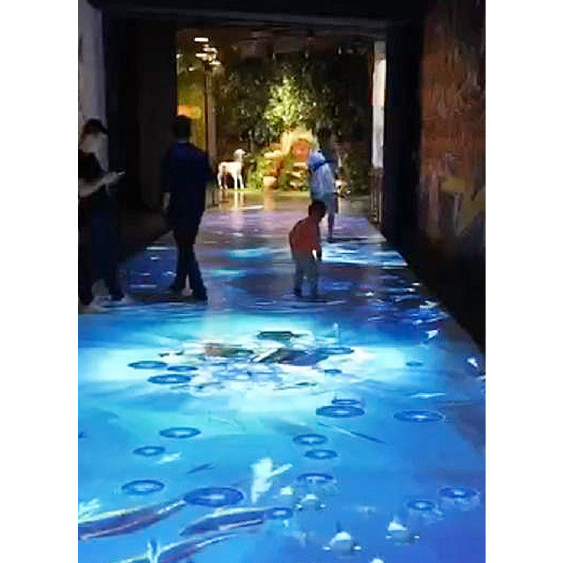Projection de sol interactive avec multi-canal pour le long couloir du parc