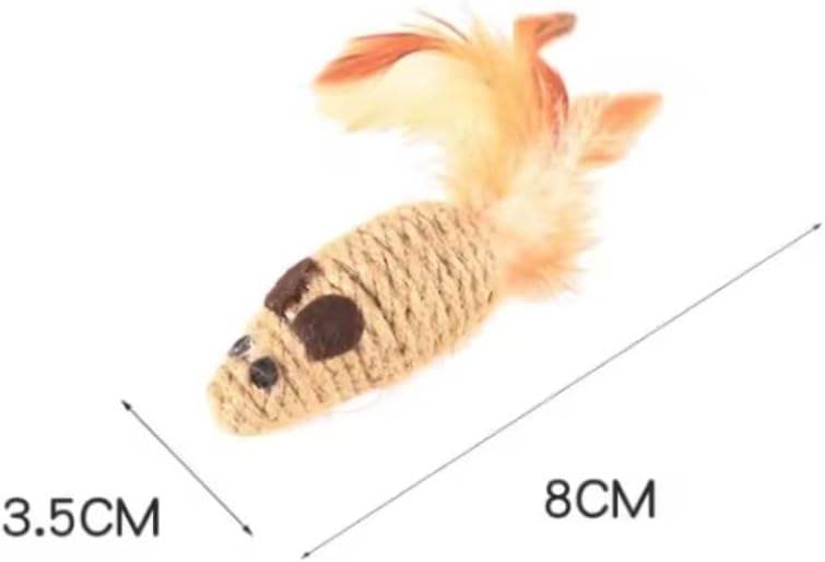 Jouet interactif de haute qualité pour animaux de compagnie, souris en sisal avec queue en plumes, jouet pour chat en sisal