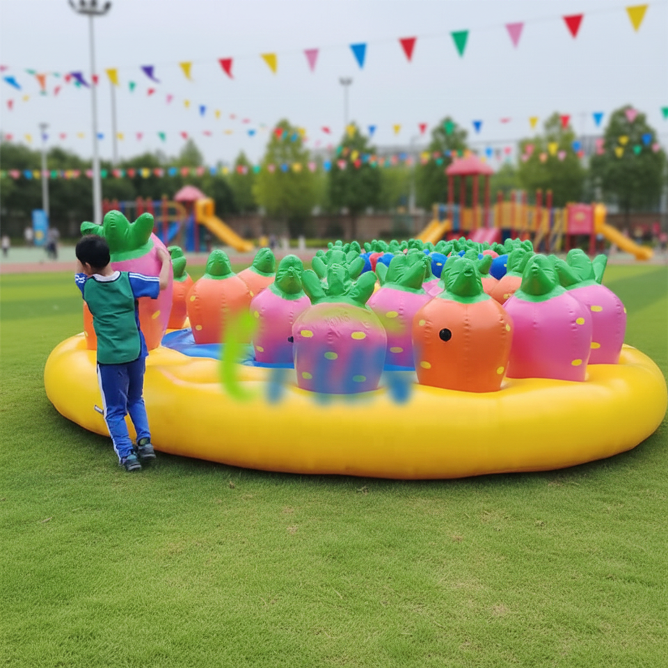 Jeu de team building interactif gonflable : Plantez le radis – Course aérienne en équipe – Jeux sportifs – Marque IFUN – Matériau PVC