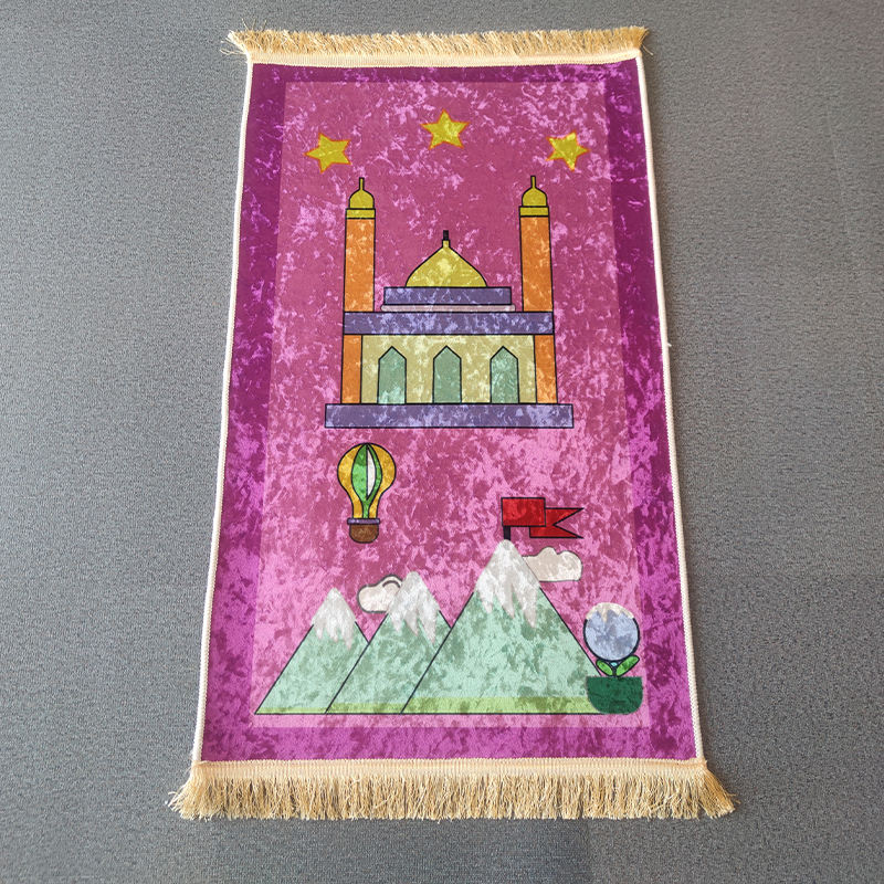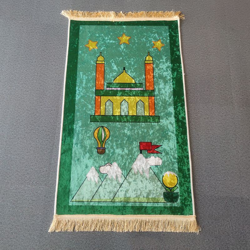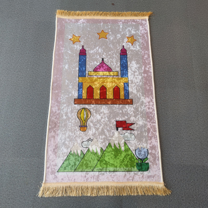 Tapis de prière interactif en polyester brodé pour cadeau islamique Ramadan pour petits enfants musulmans