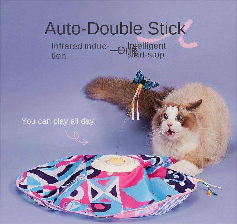 Tapis interactif intelligent pour chat avec papillon tournant, tapis de jeu électronique à mouvement pour chats d'intérieur, jouet d'exercice pour animaux de compagnie rechargeable par USB