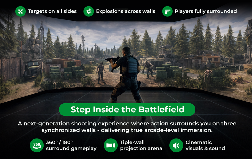 Simulateur de tir mural interactif multi-écrans avec système de jeu au pistolet laser IR pour les lieux de jeux et de divertissement en intérieur | INEK00012