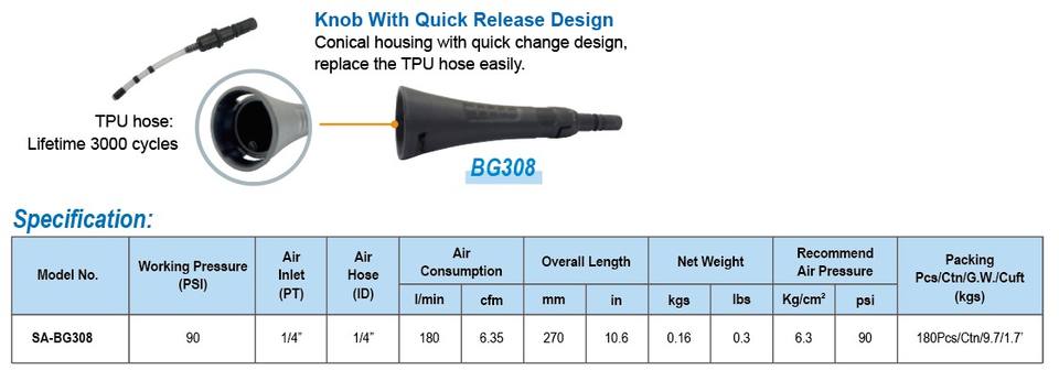 180 l/min (6,35 pi³/min)Consommation d'air Moyenne