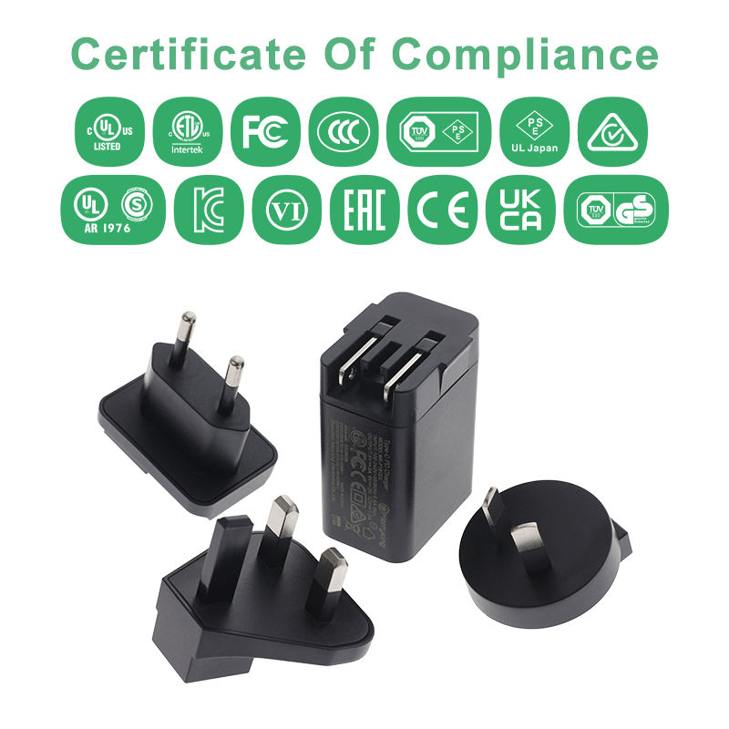 Chargeur mural à double port USB interchangeable 5V 2A avec adaptateur d'alimentation à commutation