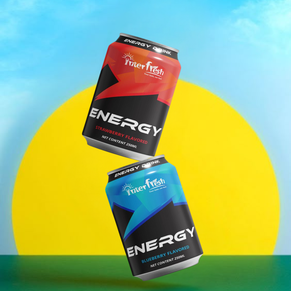 Interfresh Carbonated Flavored Blueberry Energy Drink 250ml OEM ODM Label Vietnam Manufacturer HALAL ISO Certified Filtered