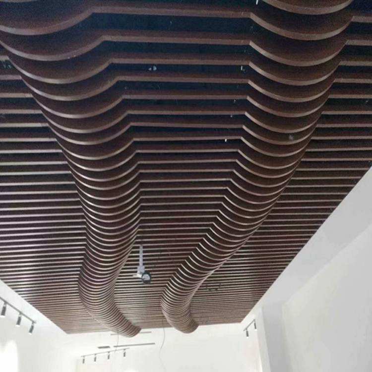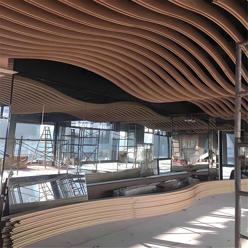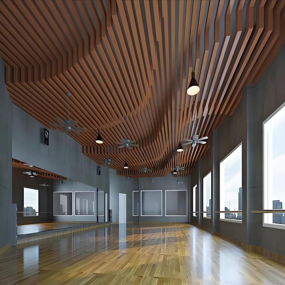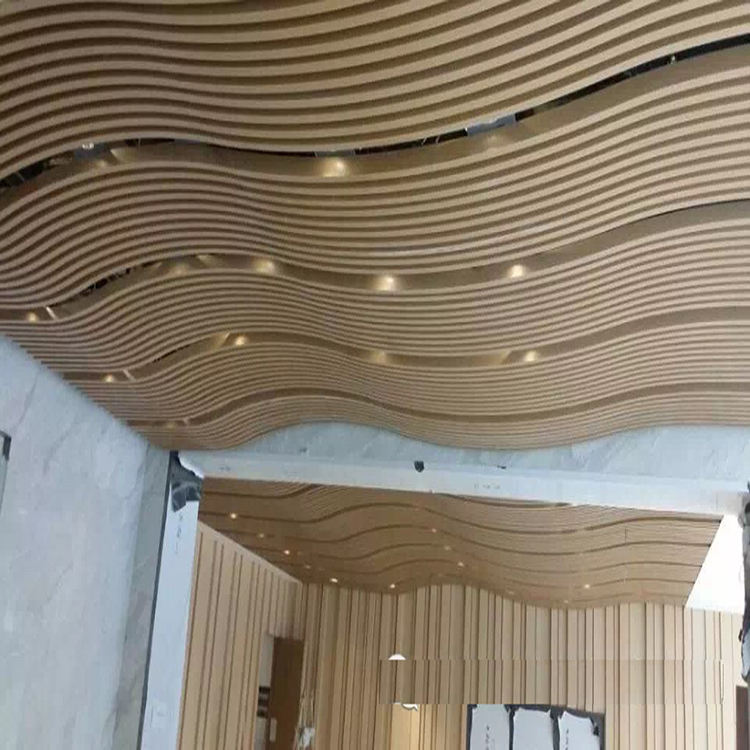 Décoration de plafond de couloir intérieur Panneaux de plafond en aluminium ondulés 3d aspect bois Lames à lamelles en métal Conception de faux plafond Pop