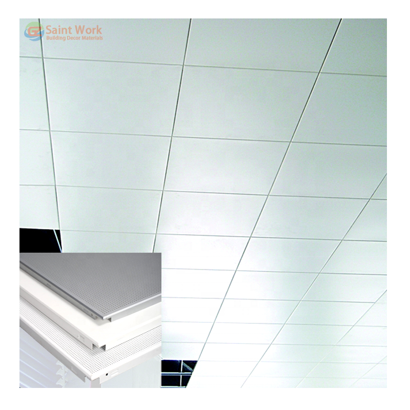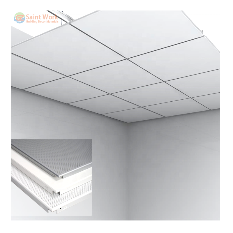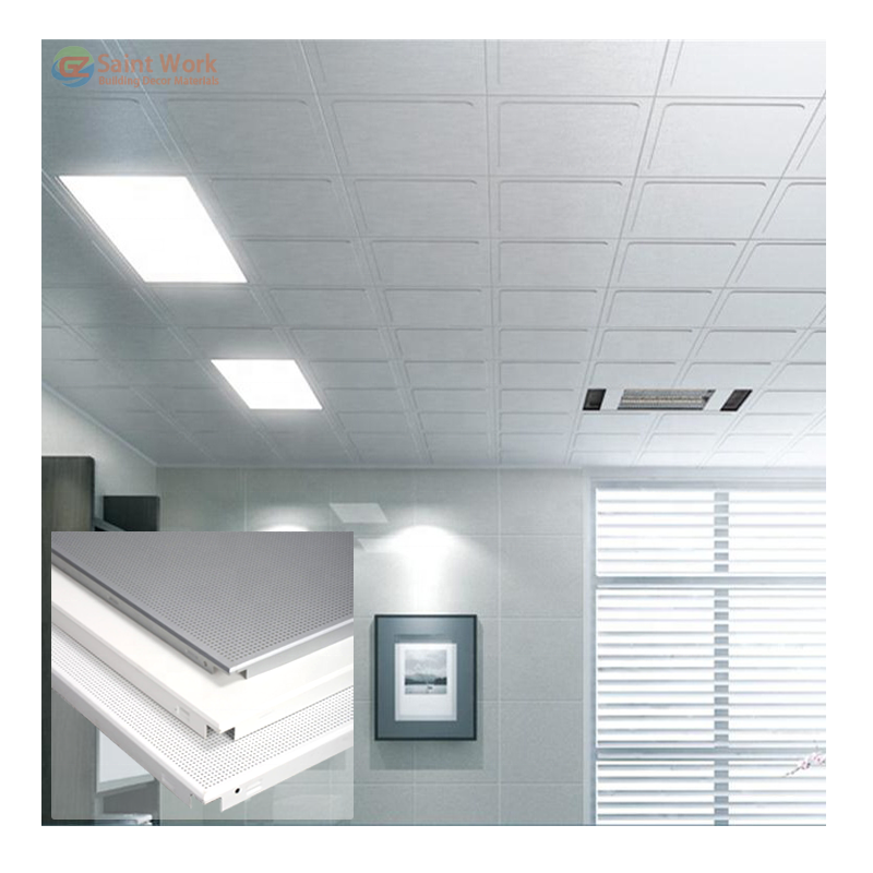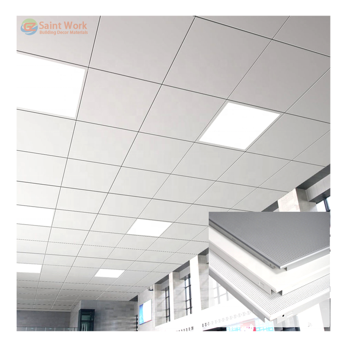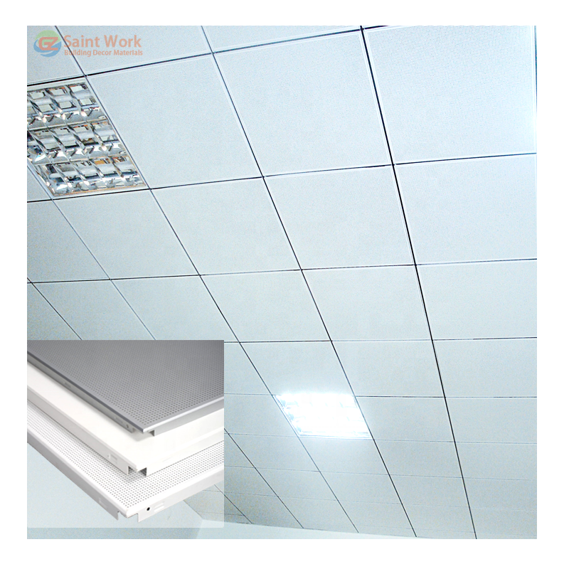 Matériau décoratif intérieur Faux plafond suspendu en aluminium 600*600 Plaques de plafond Tuile de plafond en métal plat perforé