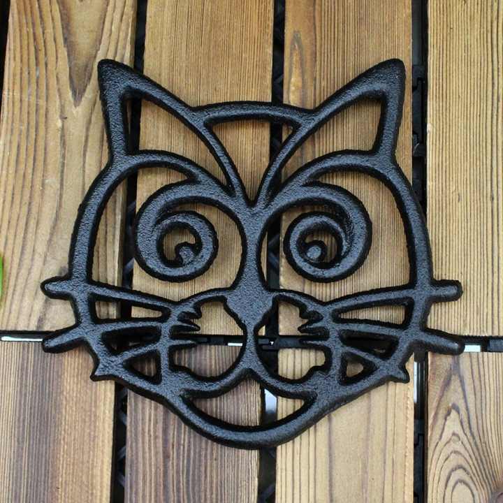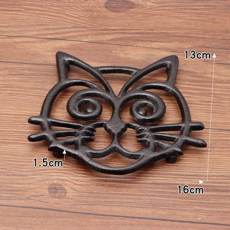 Dessous de plat intérieur de table en fonte Silhouette de chat porte-théière tête de chat squelette sous-plat en métal pour manique de table de cuisine