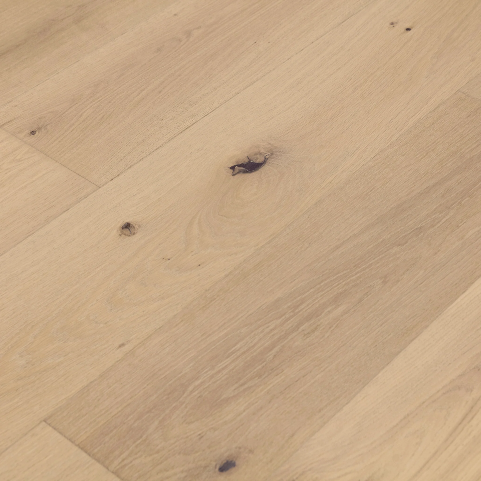 Plancher en bois franc de chêne blanc de qualité CD à lattes larges, brossé, multicouche, en bois d'ingénierie