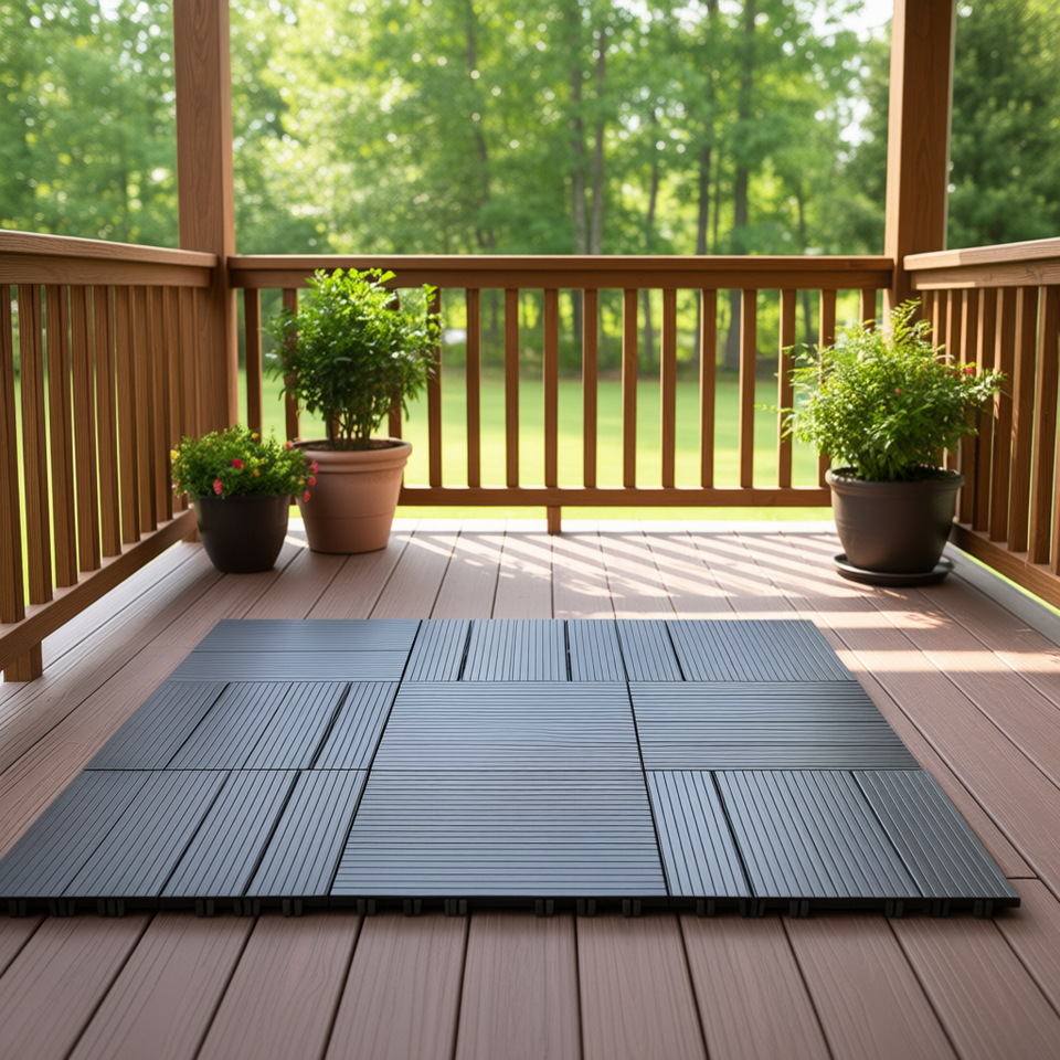 Dalles de terrasse en plastique gris foncé emboîtables 12x12 pouces, lot de 54 pour véranda