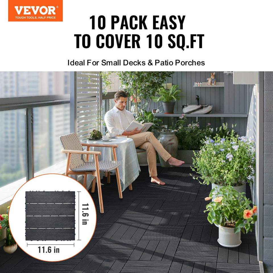 Dalles de terrasse emboîtables, lot de 10, 12''x12'', 10 m² Revêtement de sol extérieur en plastique imperméable, pour une utilisation par tous les temps, terrasse, plancher de patio