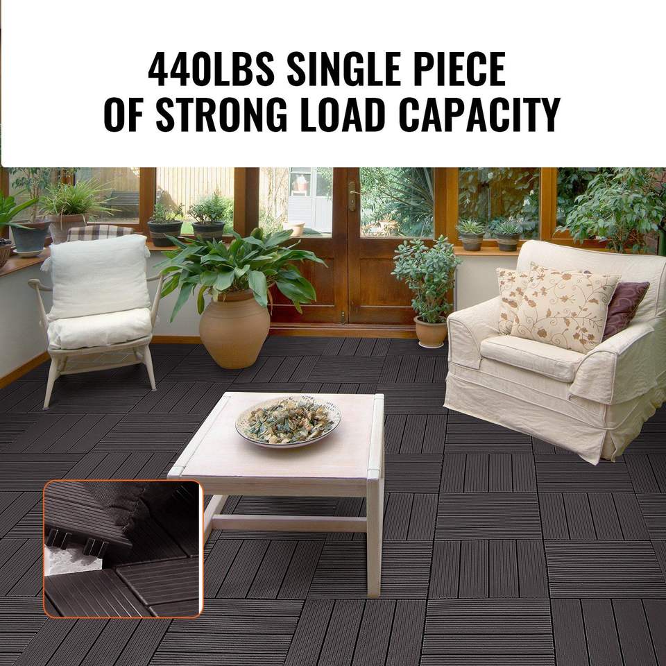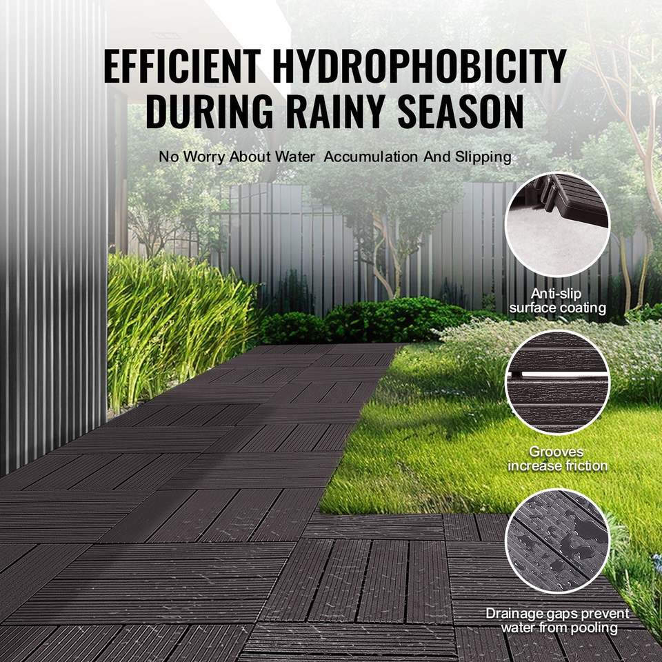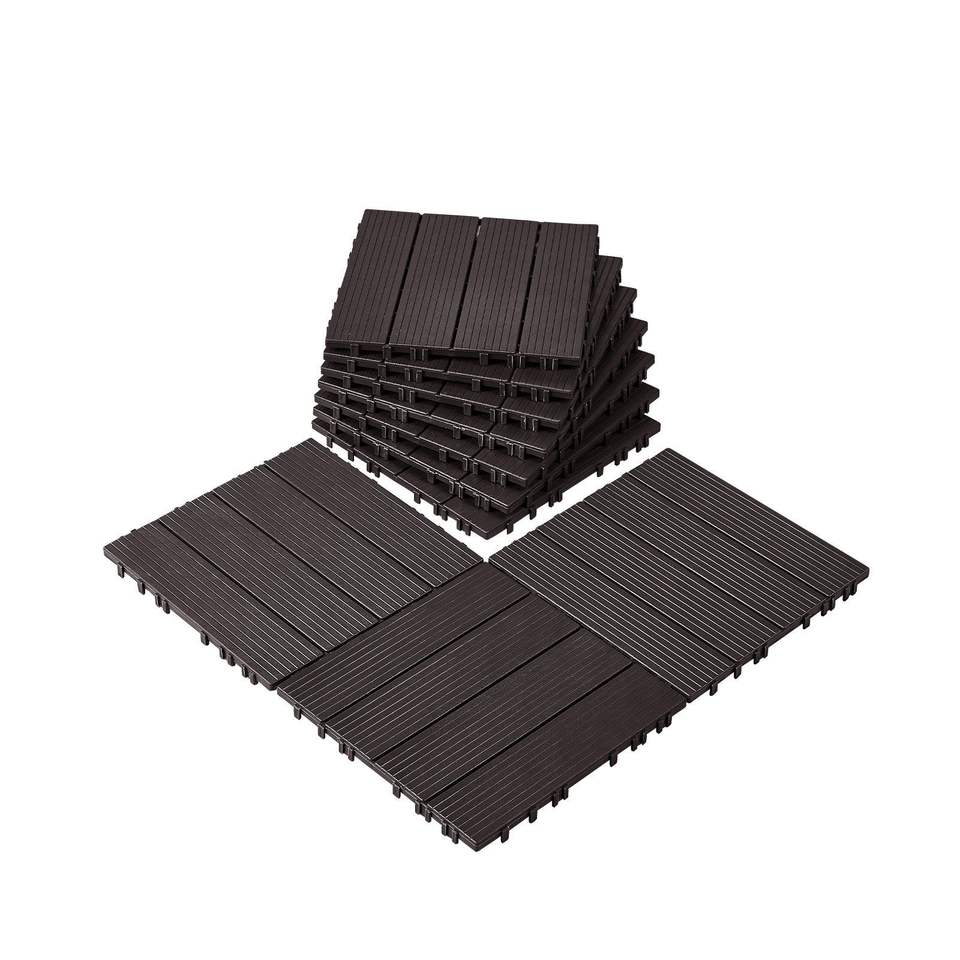 Dalles de terrasse emboîtables, lot de 10, 12''x12'', 10 m² Revêtement de sol extérieur en plastique imperméable, pour une utilisation par tous les temps, terrasse, plancher de patio